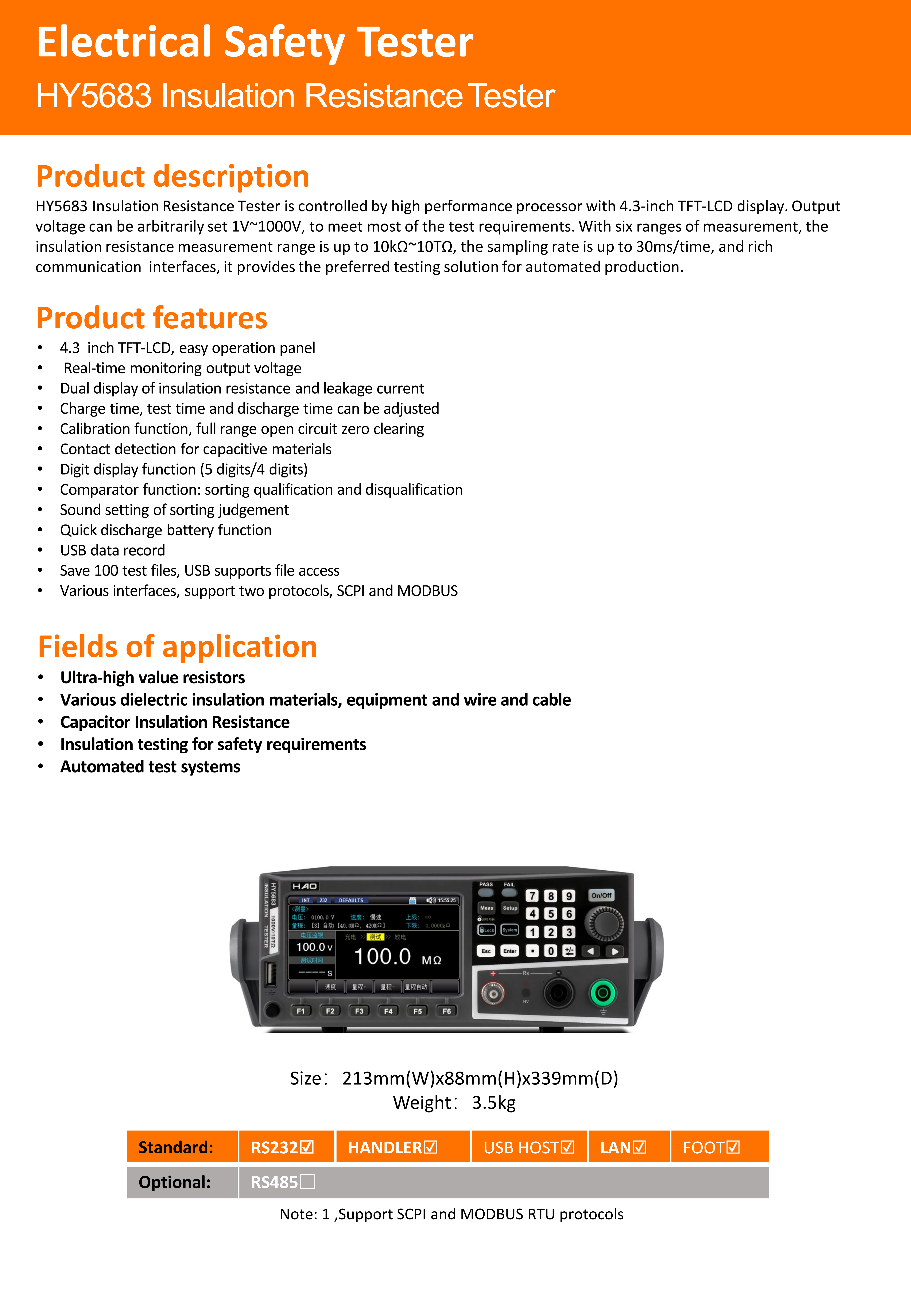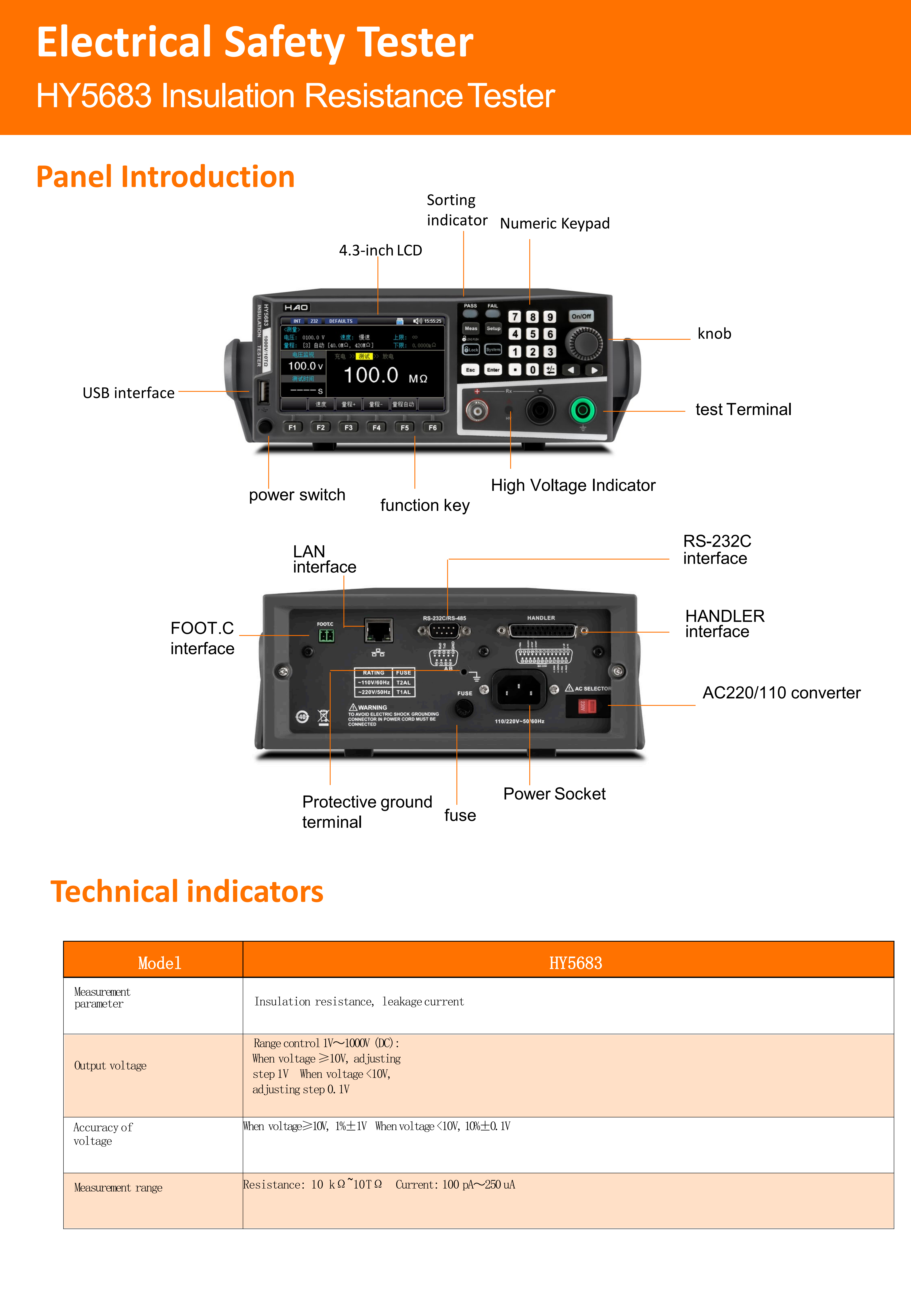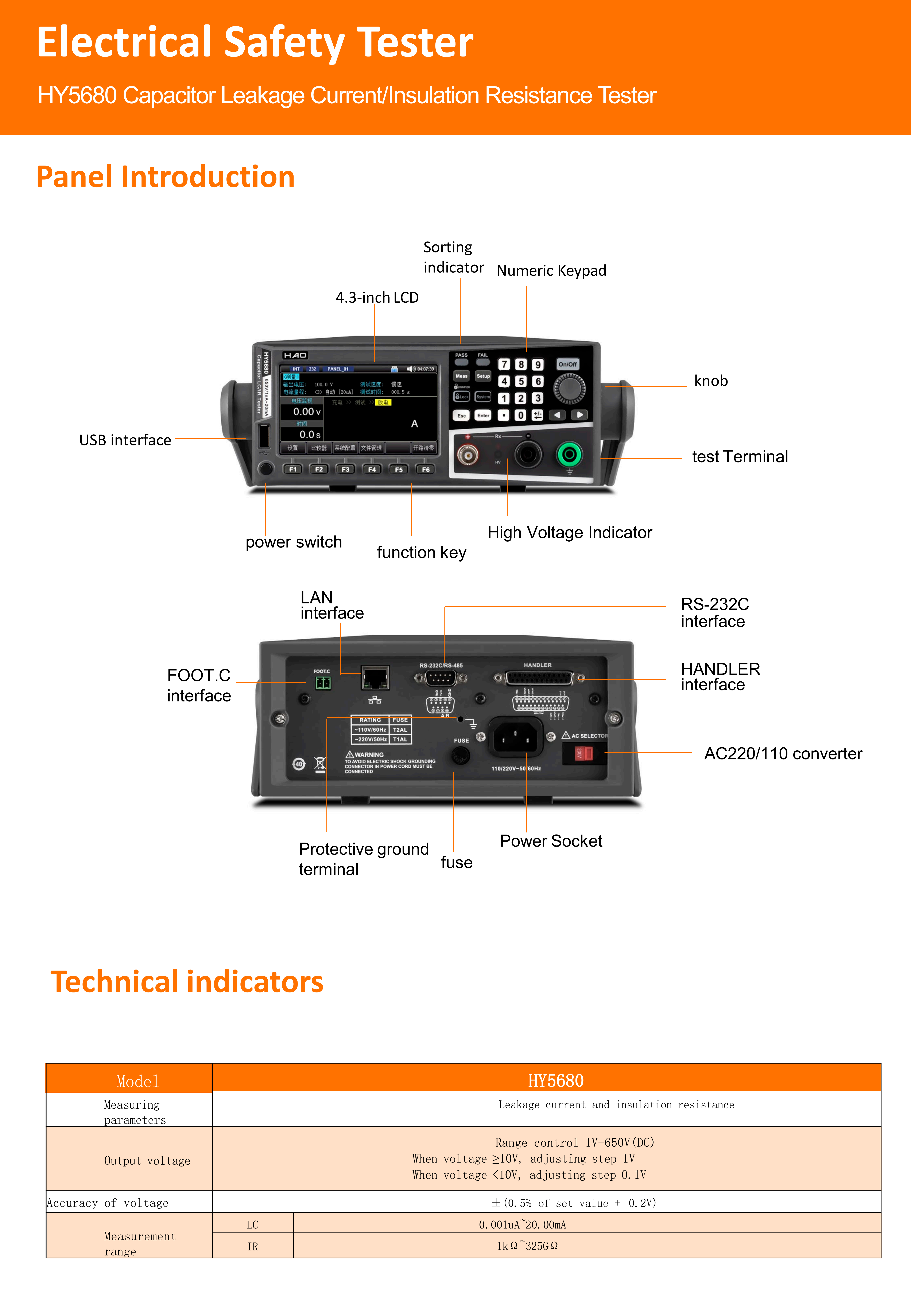 HaoYi HY5680/hy5683电容器漏电流/绝缘电阻测试仪最大输出电压1v-1000v连续可调