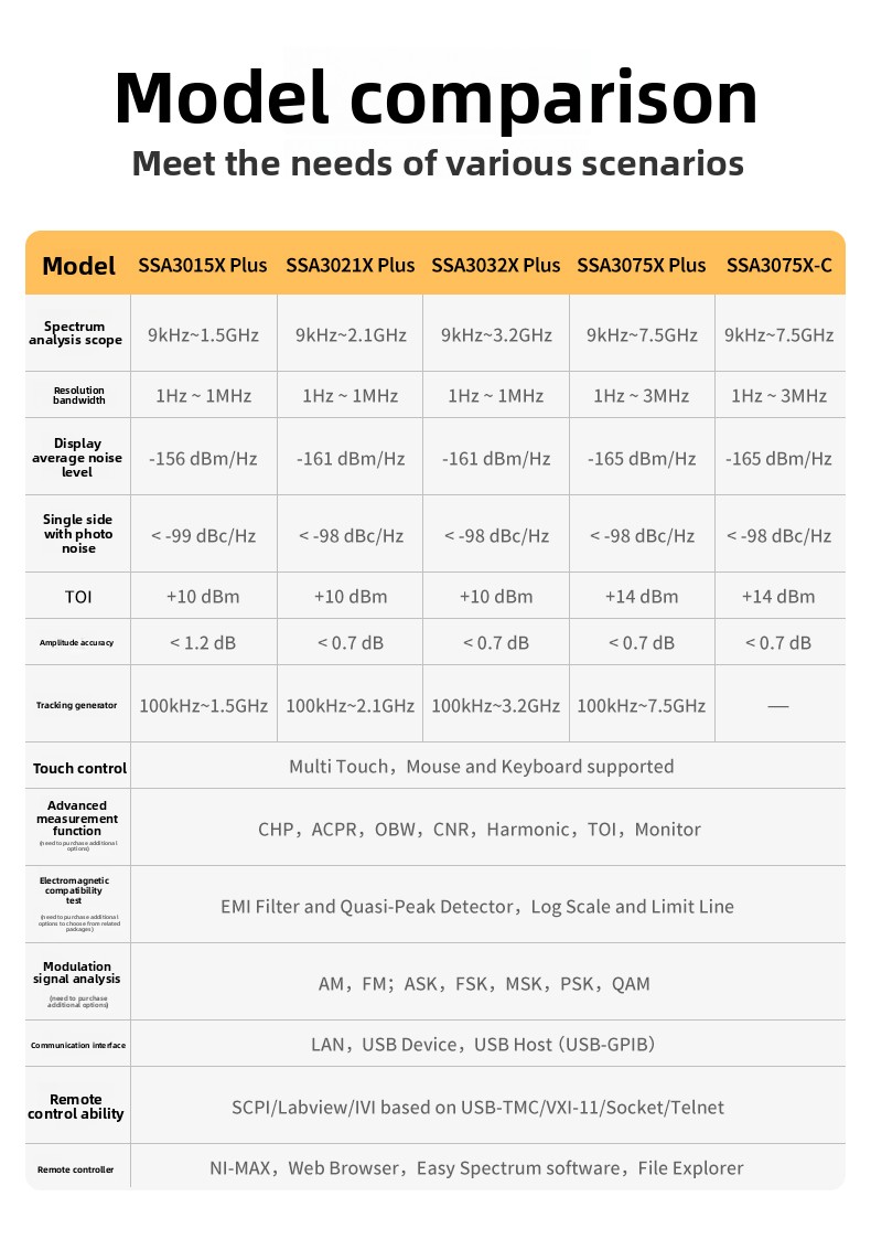 Siglent SSA3015/21/32/75X Plus X-C X-E TG 高性能频谱分析仪,带跟踪源,适用于研究实验室使用
