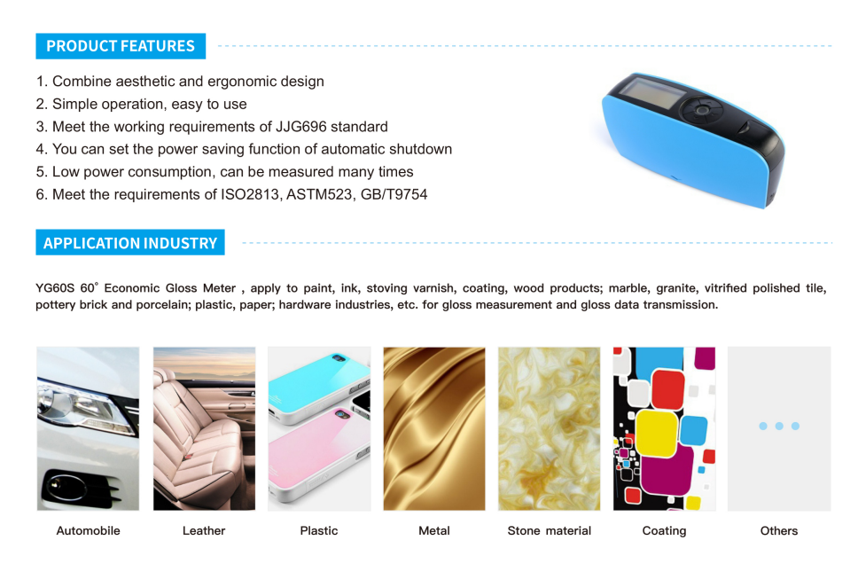 YG60S 60°Economic Gloss Meter is independently developed by Shenzhen 3nh Technology Co., Ltd with independent intellectual property, manufactured according to international standard ISO2813 and China standard GB/T 9754. It can meet requirements of JJG696.