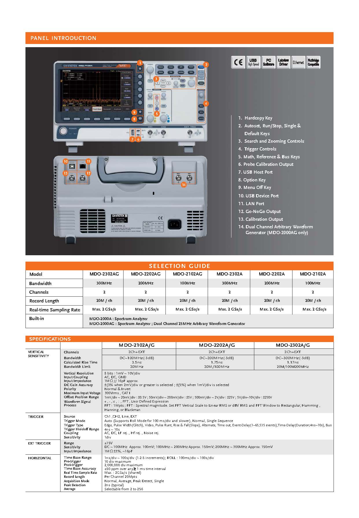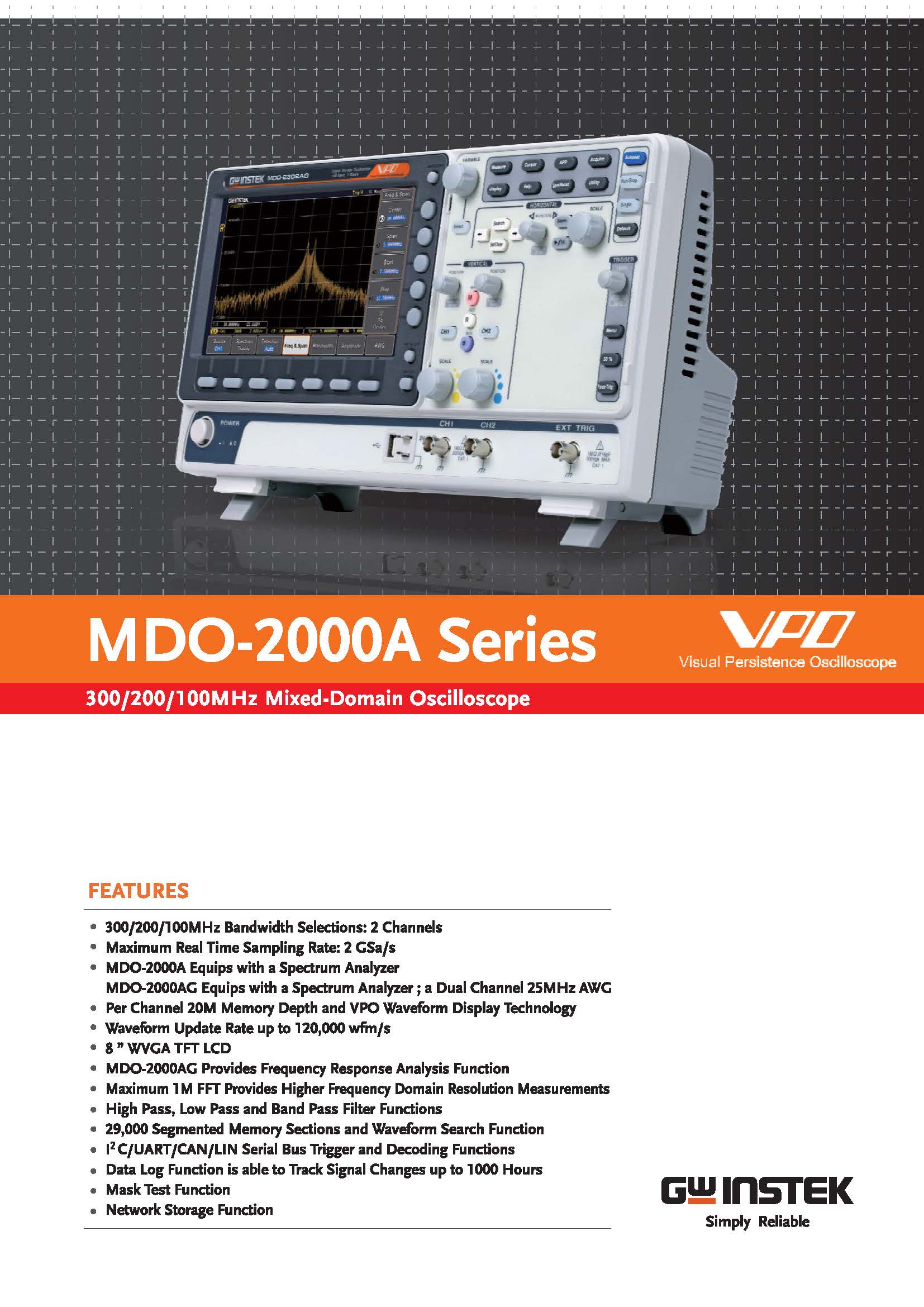 GW InstekGWInstek MDO-2102A MDO-2202A MDO-2302A 双通道多功能混合域数字示波器