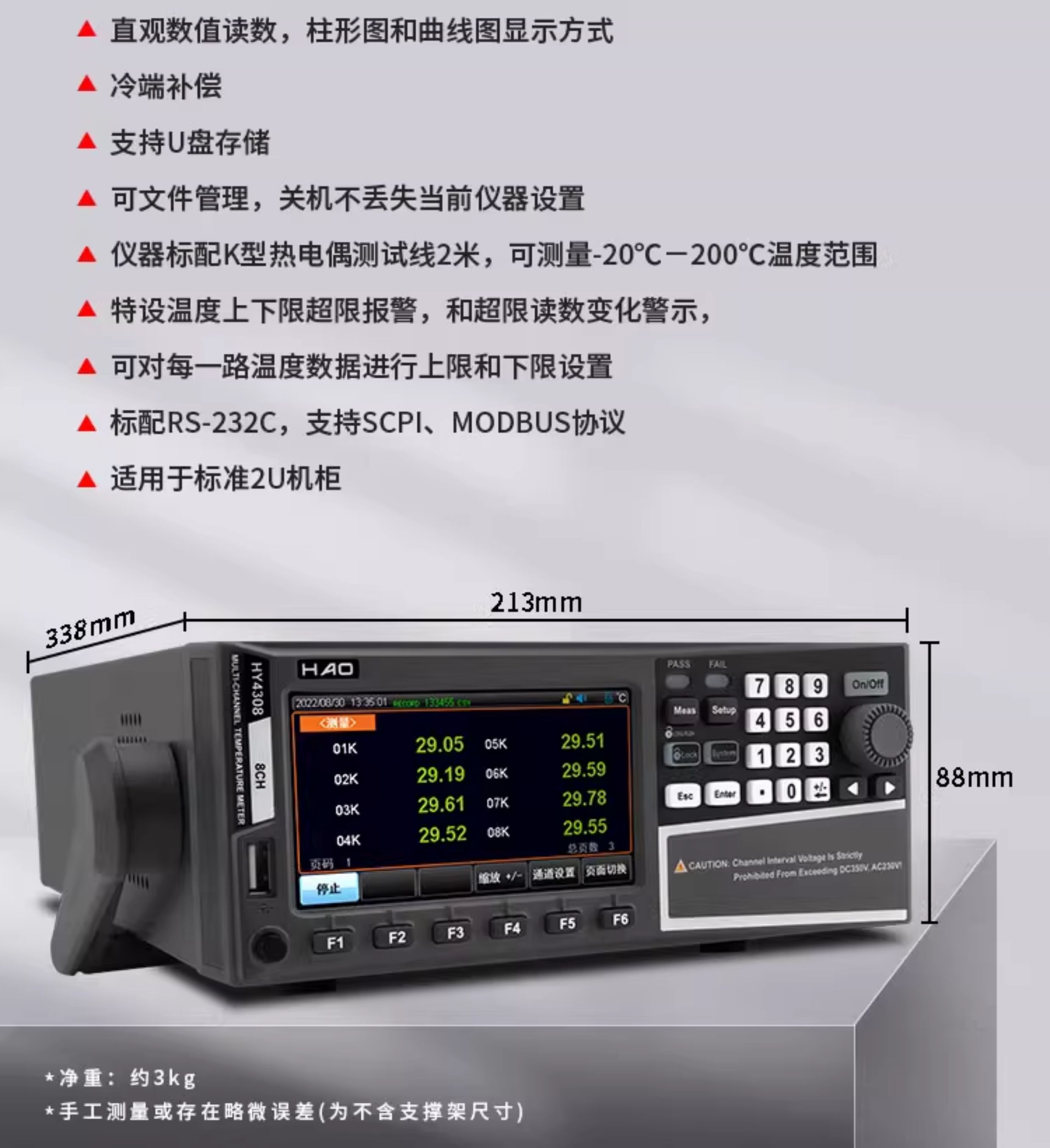 Oscilloscopes, spectrum analyzers, waveform generators, signal generators, digital multimeters, RF/microwave signal sources, DC electronic loads, multi-channel temperature testers, infrared thermal imagers, infrared thermometers, digital clamp meters