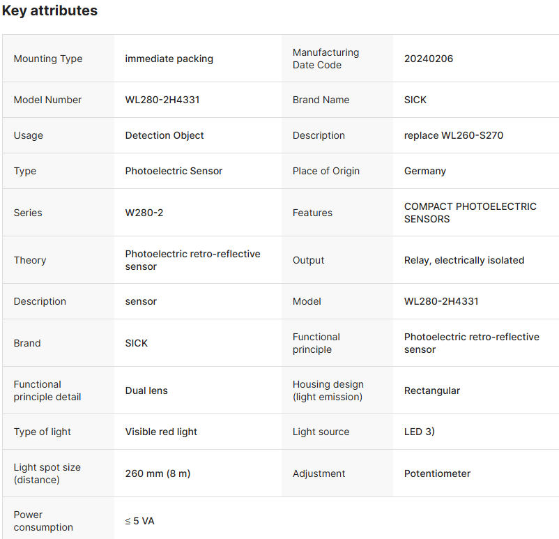 WL280-2H4331 1 件全新 SICK WL280-2H4331 光电传感器