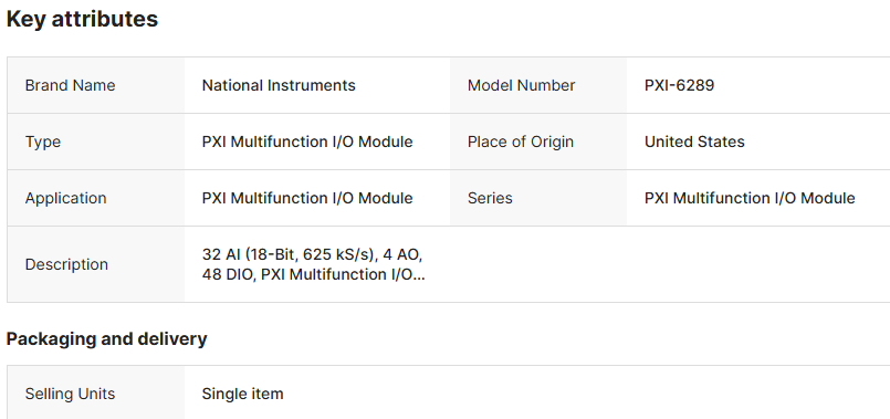 国家仪器公司 NI PXI-6289 PXI 系统用多功能 I/O 模块