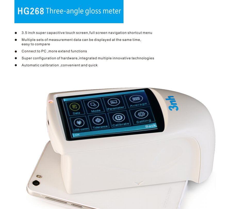 3nh HG268 木材表面光泽度计高精度快速测量测试设备 5套数据 免费PC软件 1年保修