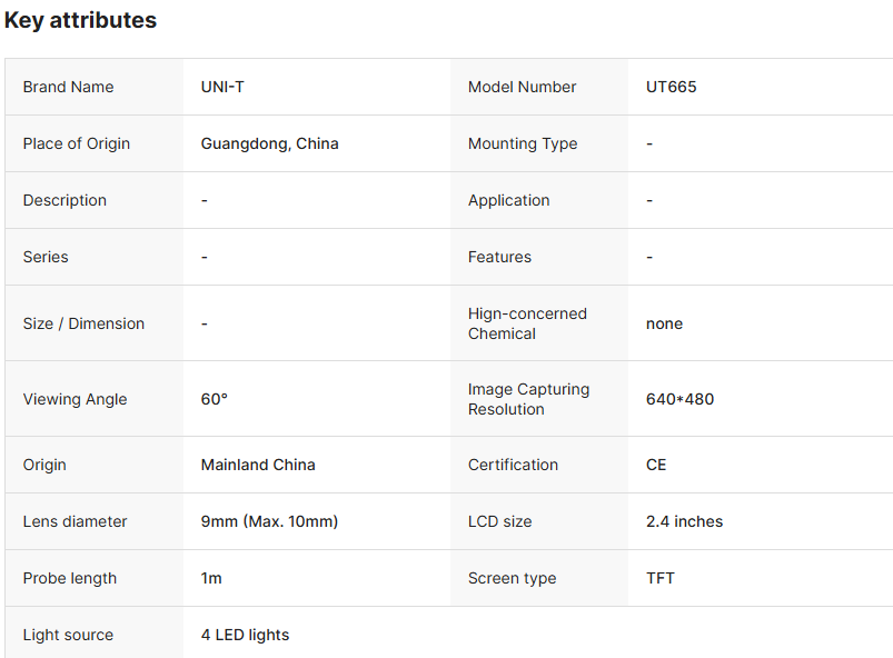 UNI-T UT665 内窥镜防水探头工业管道检测仪