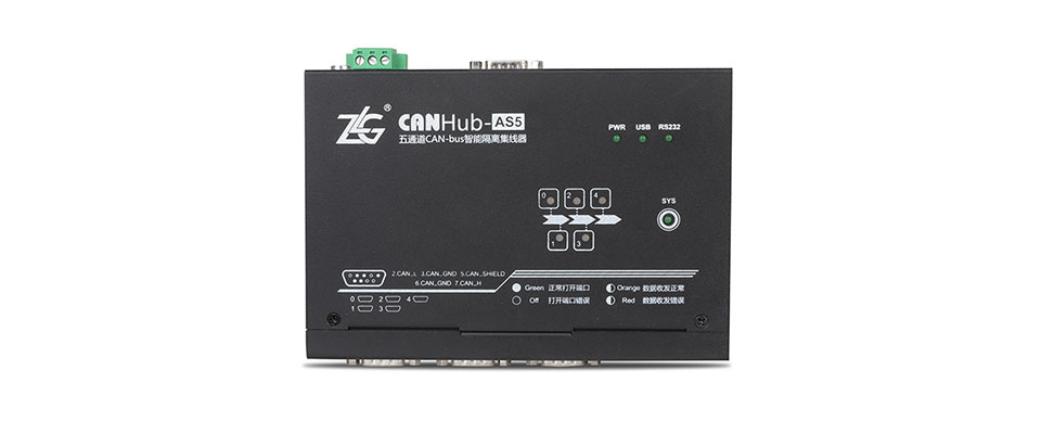 ZLG CANHub-AS5 5-Ch工业CAN集线器,2500VDC隔离和1mbps速率