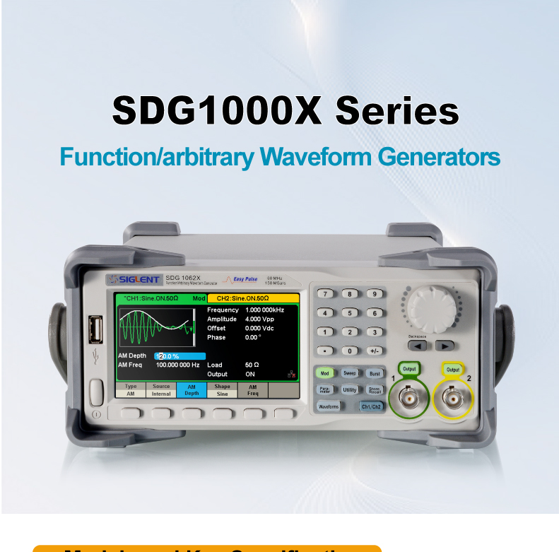 The SDG1000X series dual - channel function/arbitrary waveform generators have a maximum output frequency of 60 MHz, with a sampling rate of 150 MSa/s and 14 - bit vertical resolution. Based on the traditional DDS technology, the innovative EasyPulse and TrueArb technologies are adopted to overcome the inherent defects of DDS when outputting pulses and arbitrary waves. The independent square wave channel can generate low - jitter square waves with a frequency of up to 60 MHz. It has the function of generating various complex waveforms such as modulation, frequency sweep, Burst, harmonic generation, and channel merging, which can meet the wider application needs of users.