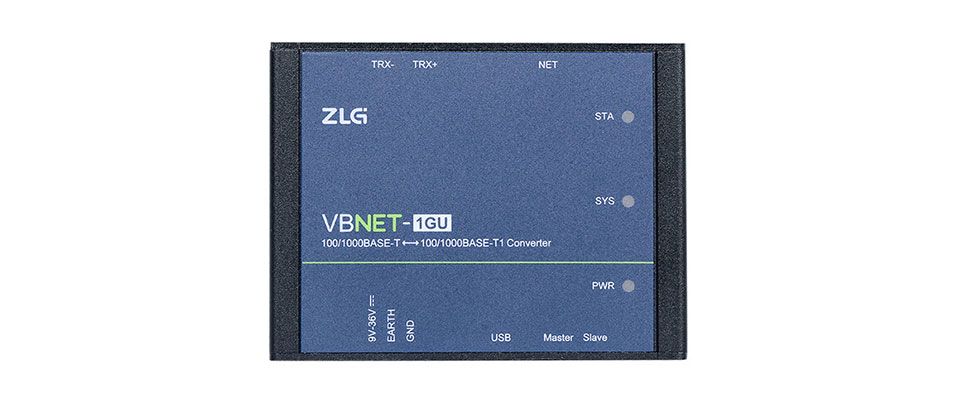 ZLG VBNET-1GU 汽车以太网转换器 100/1000BASE-T1 至 100/1000BASE-TX BroadR-Reach