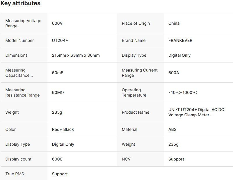 UNI-T UT204+ 数字钳形表,真有效值,非接触式电压检测,400-600A 全新原装