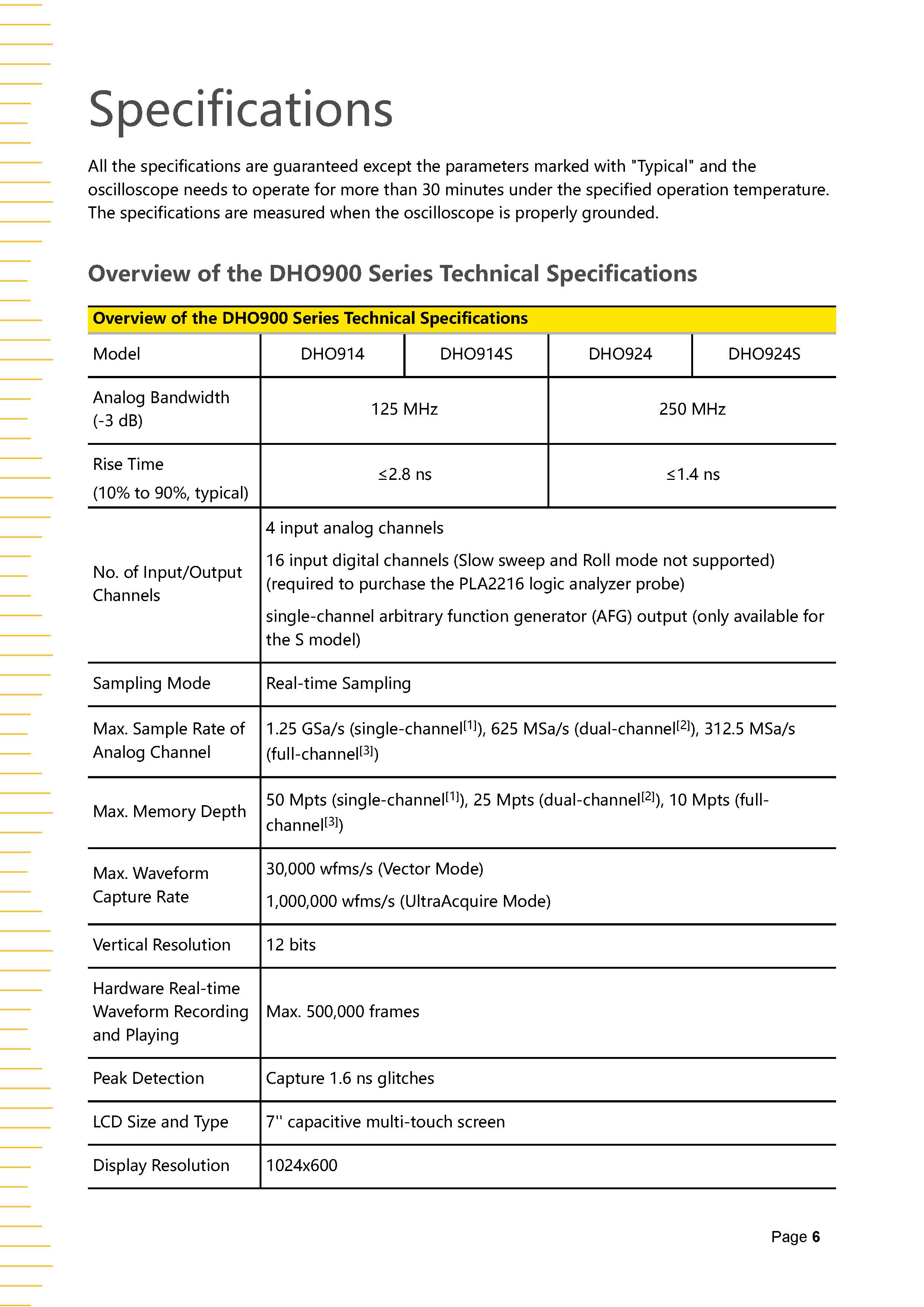 全新 RIGOL DHO914 数字示波器 4 个模拟通道 125 MHz 16 个数字通道 1.25 GSa/s 50 Mpts 7 英寸触摸显示屏