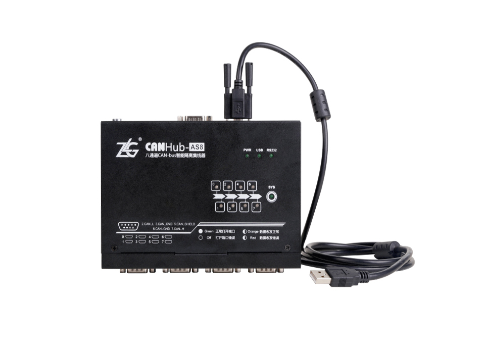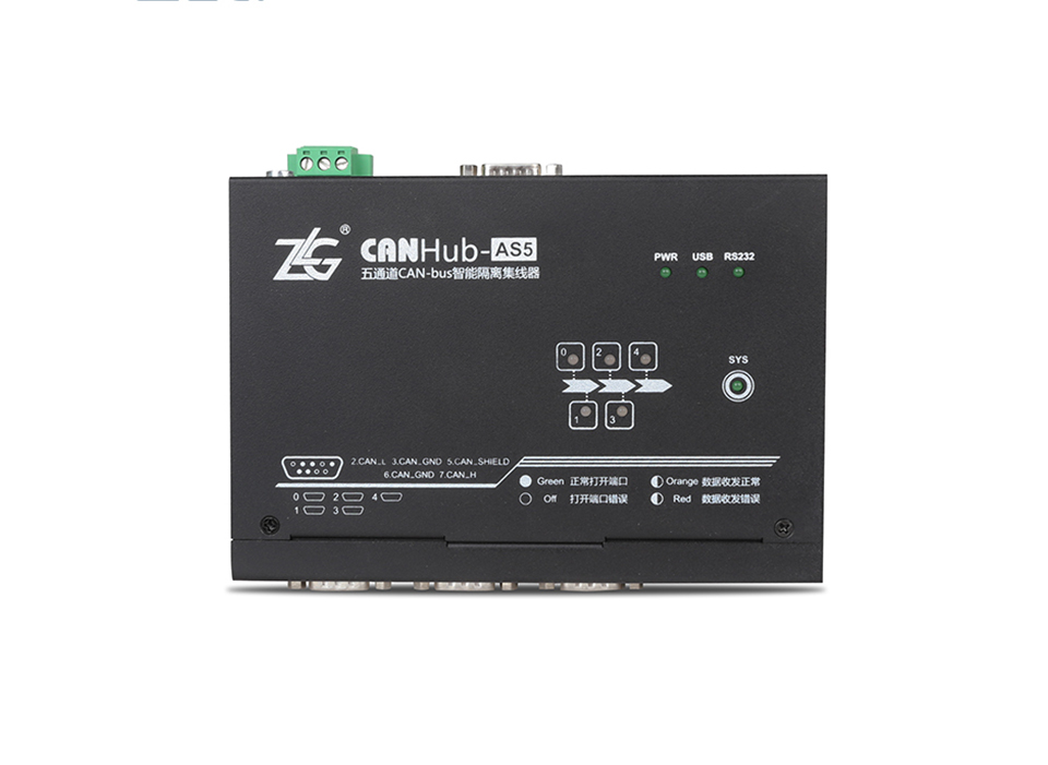 ZLG CAN隔离网关桥中继器集线器CAN网络中继器用于CAN总线网络的多通道中继CANHub-AS系列