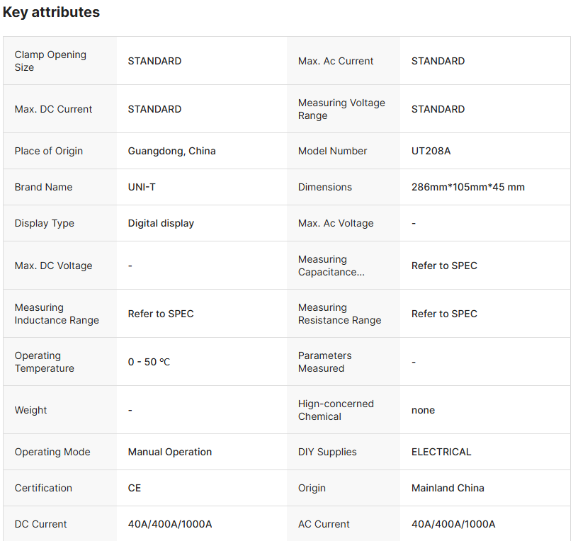 UNI-T UT208A 交流直流钳形万用表 自动量程 伏安欧姆电容赫兹温度测试