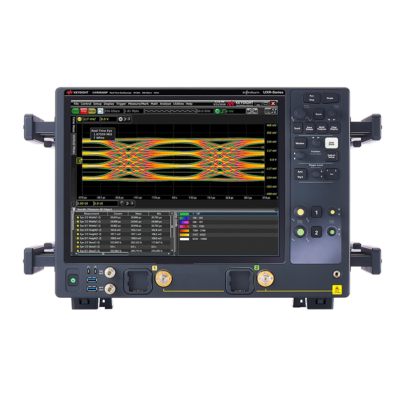 The UXR0592BP is the 59 GHz, 2 channel, 1mm input, Infiniium UXR-Series real-time oscilloscope