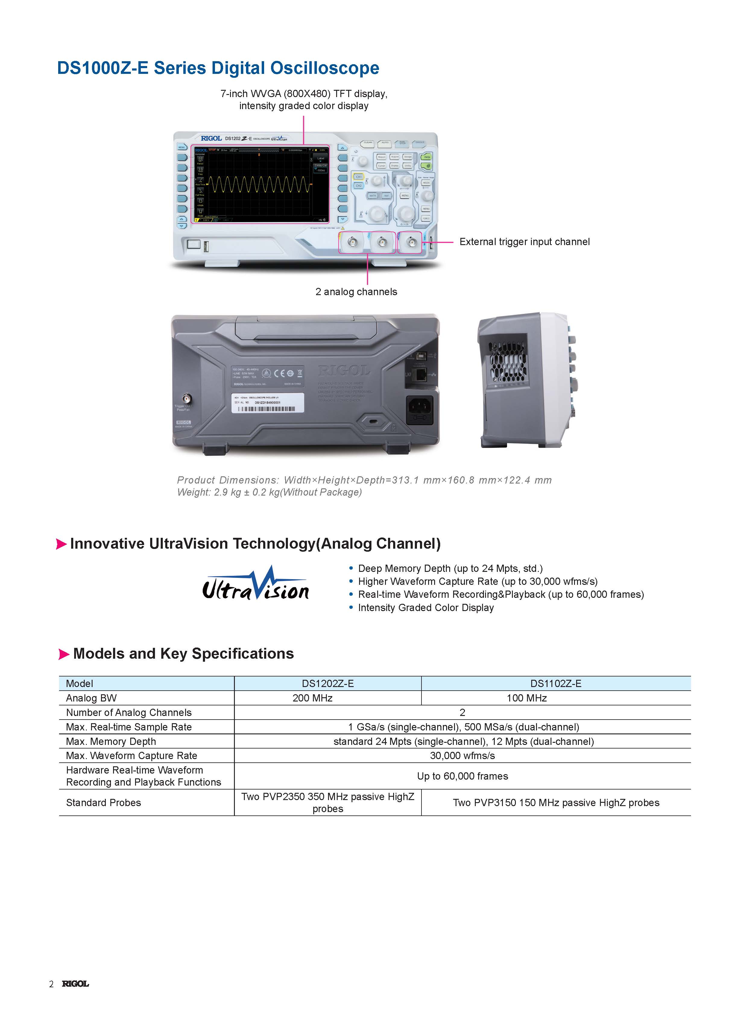 RIGOL 示波器 DS1102Z-E Rigol 数字 2 通道 100MHz 数字示波器