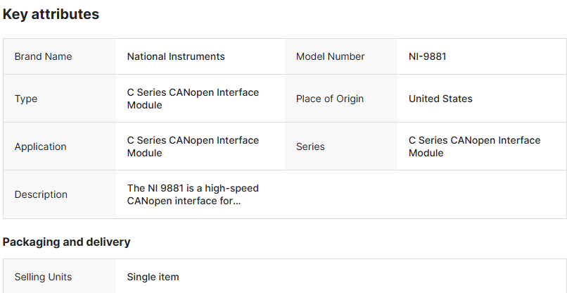 国家仪器公司 NI 9881 cRIO CANopen CAN 接口模块