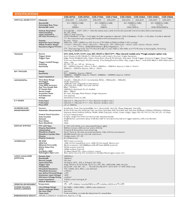 • 测量范围: GDS-2202A