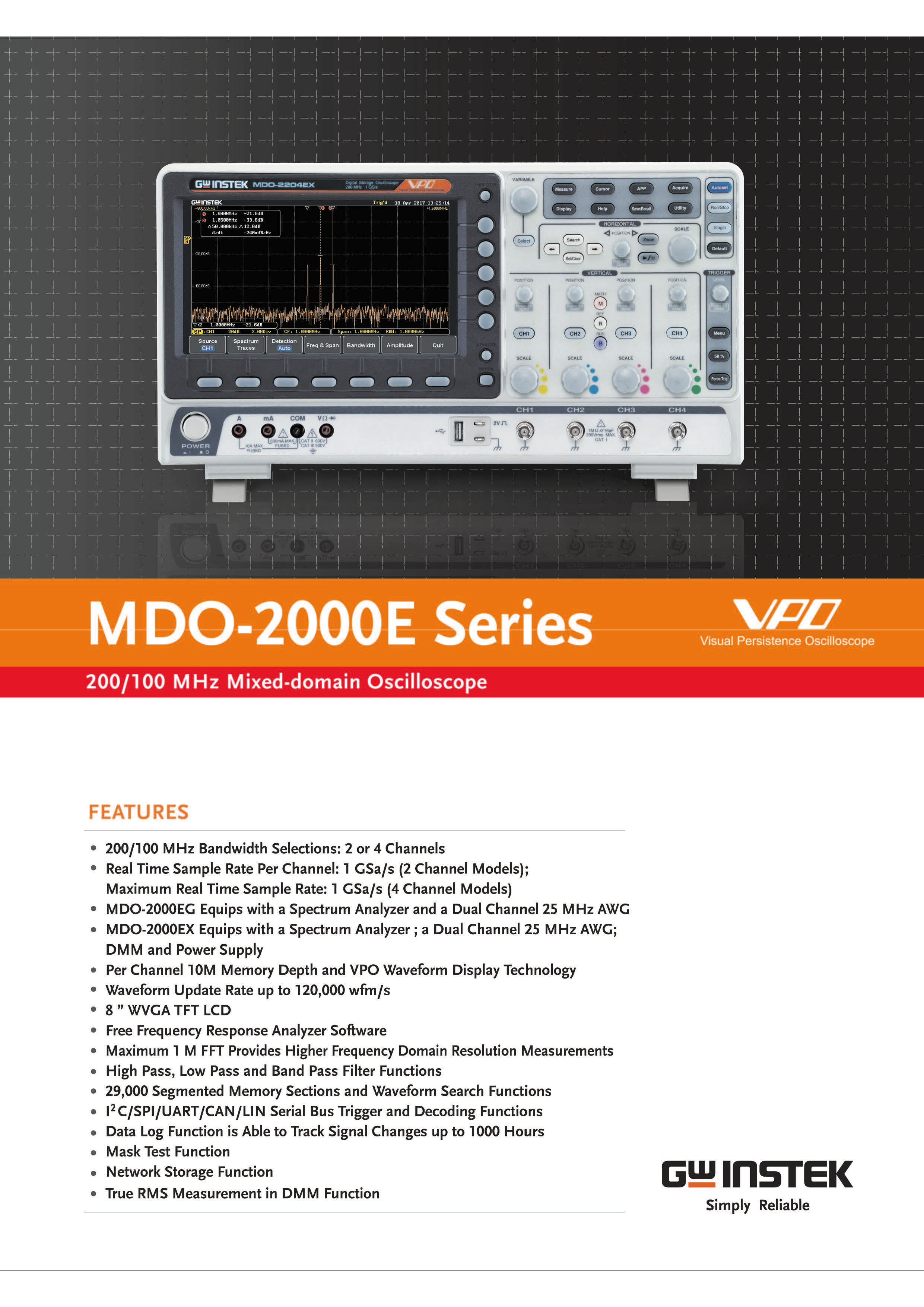 GW Instek GWInstek MDO-2102EG 数字存储示波器、频谱分析仪、双通道 25 Mhz 任意波形发生器