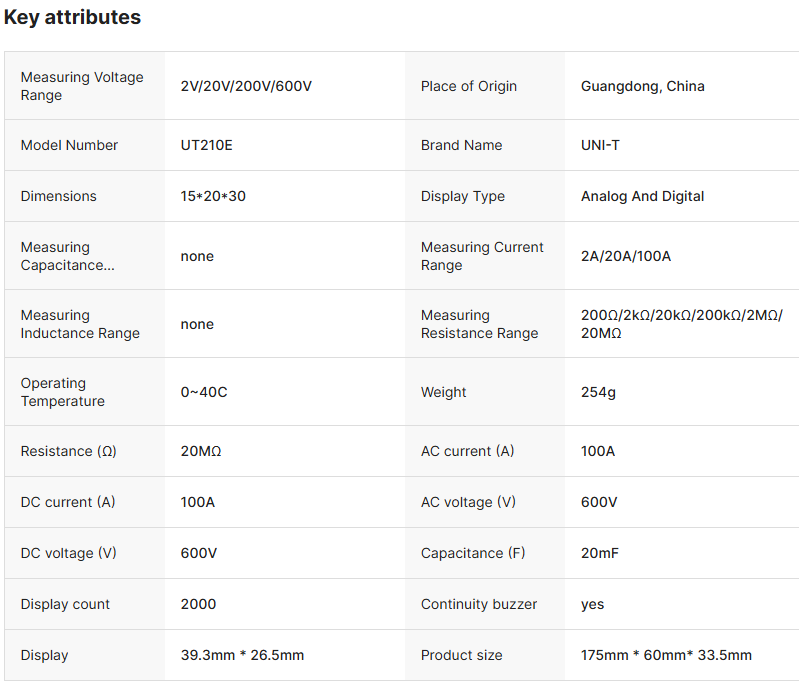 UNI-T UT210E 钳形表数字万用表手持式有效值交流/直流迷你电阻表