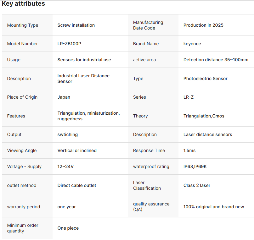 1 件全新 Keyence LR-ZB100P LRZB100P 激光传感器