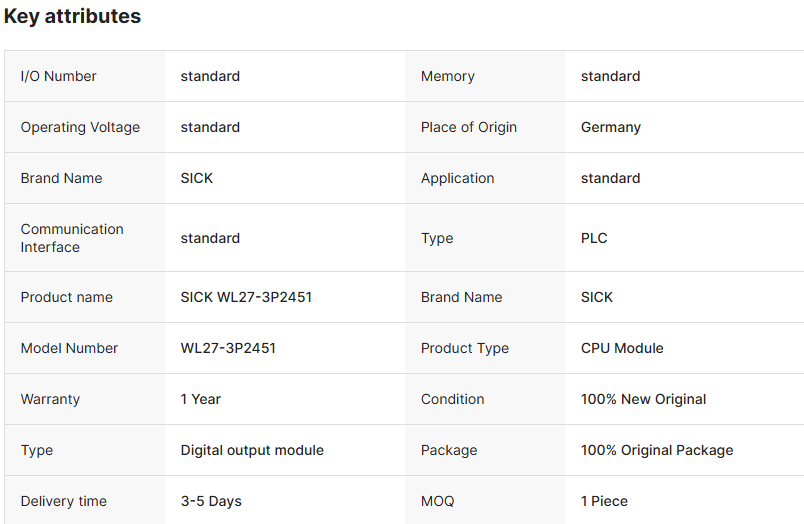 WL27-3P2451 1PCS 全新 SICK 反射式光电传感器