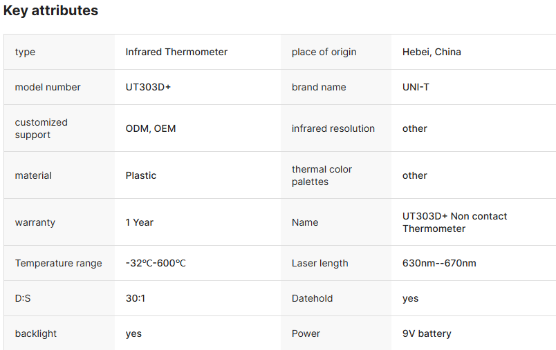 UNI-T UT303D+ 非接触式红外测温仪 测量精度