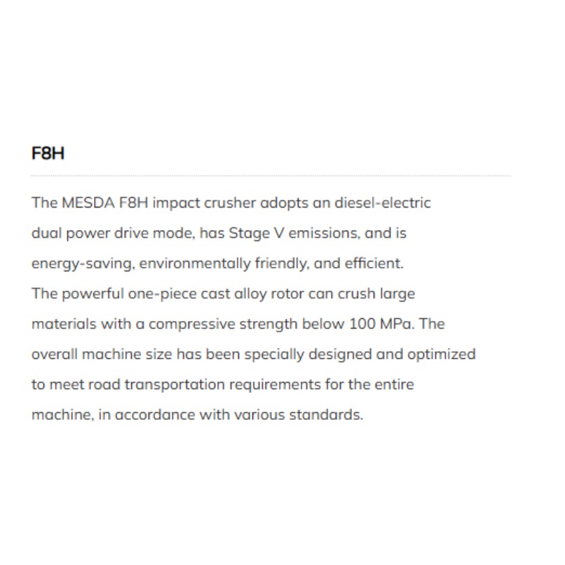 二手美达移动破碎机冲击式破碎机F8H冲击式破碎机采用柴油-电动双动力驱动模式