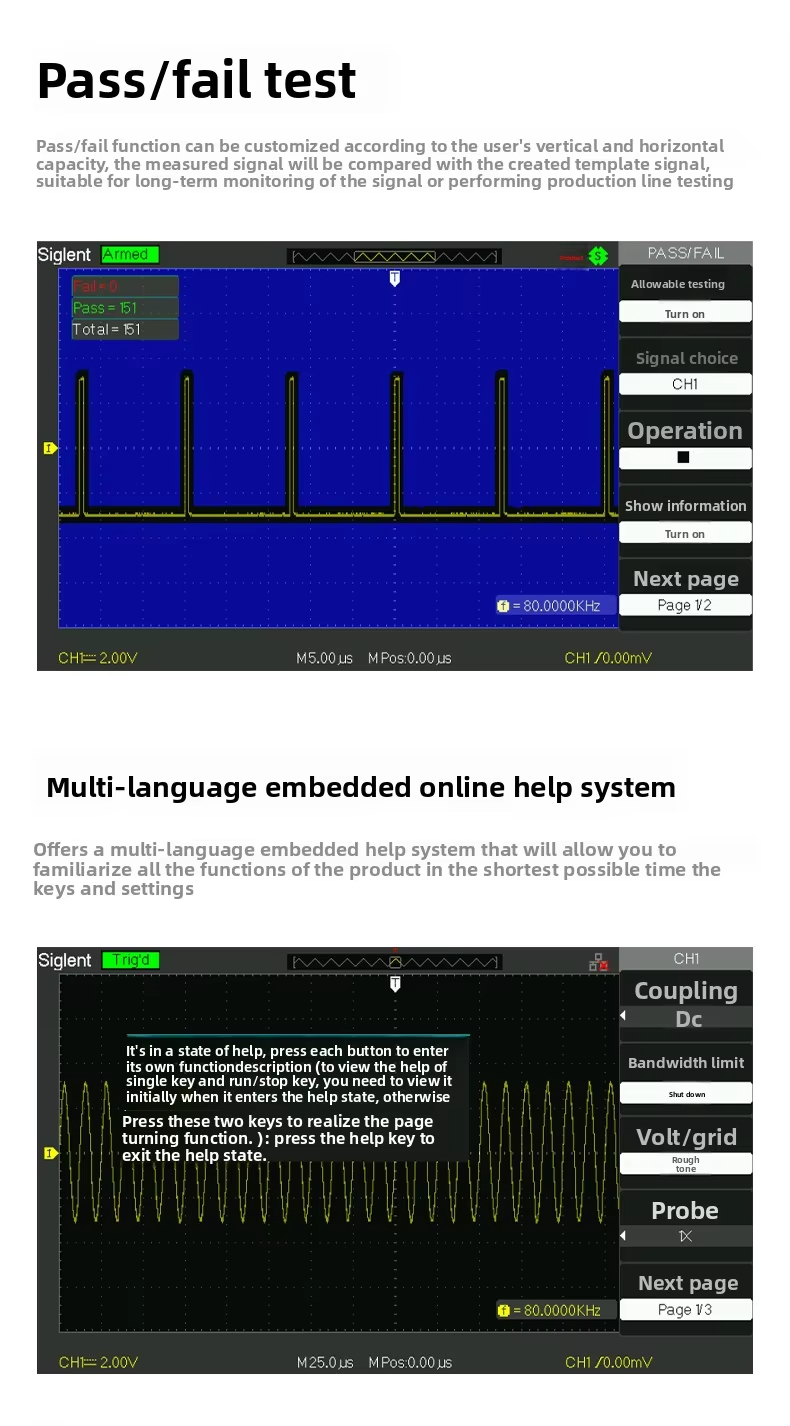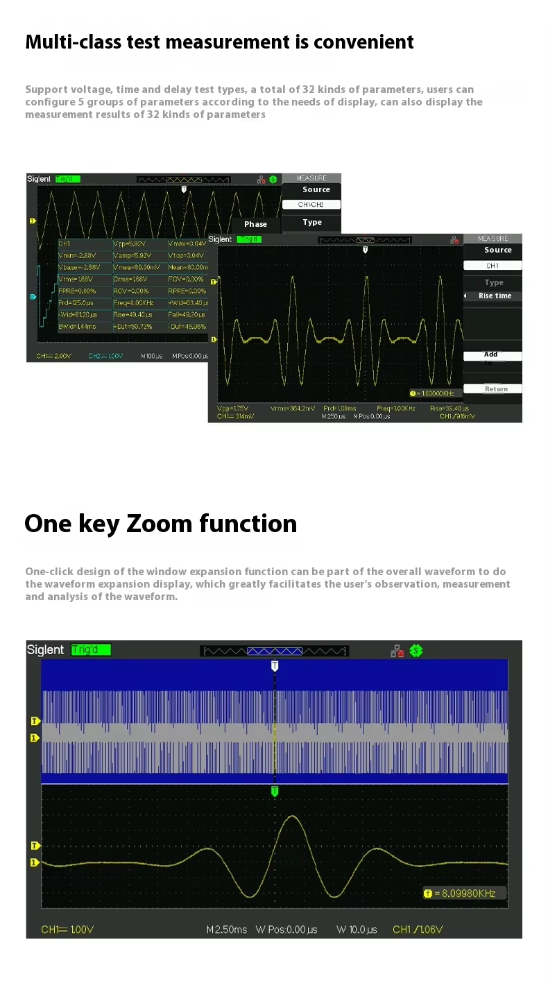 Siglent 2通道示波器 100M带宽 2Mpts存储 32自动测量 复杂信号 多语言支持 OEM 7英寸