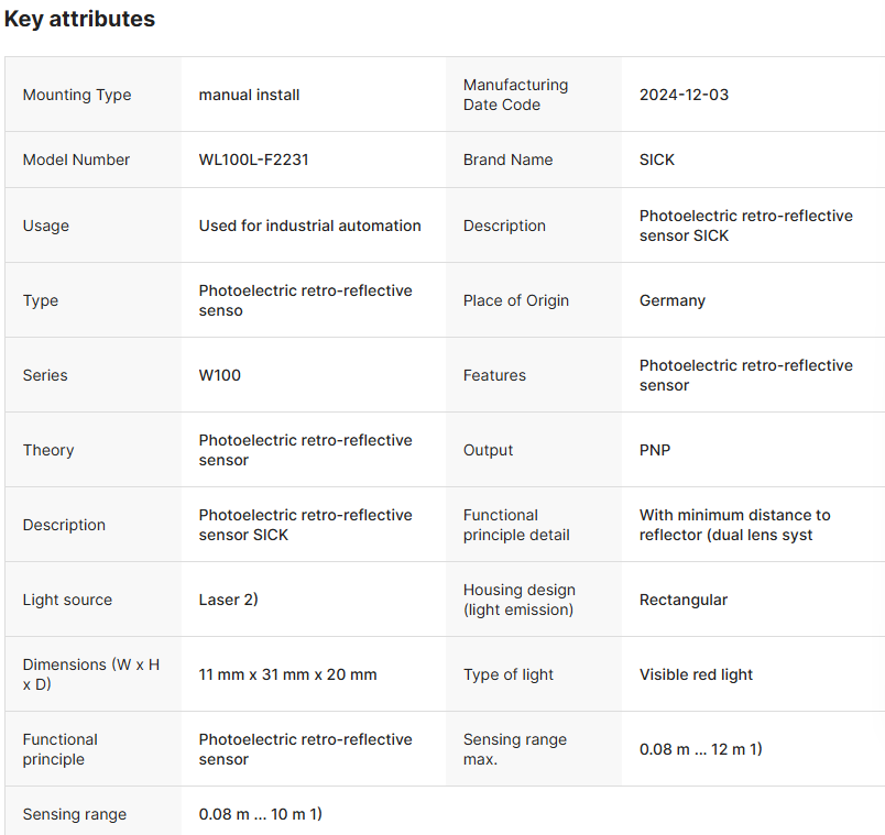 WL100L-F2231 1 件全新 SICK WL100L-F2231 光电传感器开关