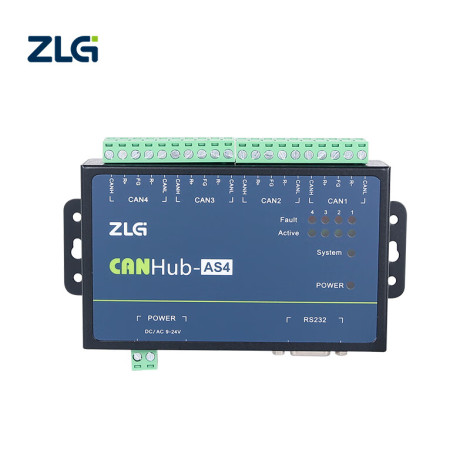 The ZLG CANHub-AS4 is a high-performance industrial-grade CAN bus hub designed to seamlessly interconnect and manage complex multi-network systems, such as automotive production lines, smart factories, and energy infrastructure. With advanced filtering, isolation, and routing capabilities, it resolves critical challenges like network segmentation, signal interference, and protocol compatibility.