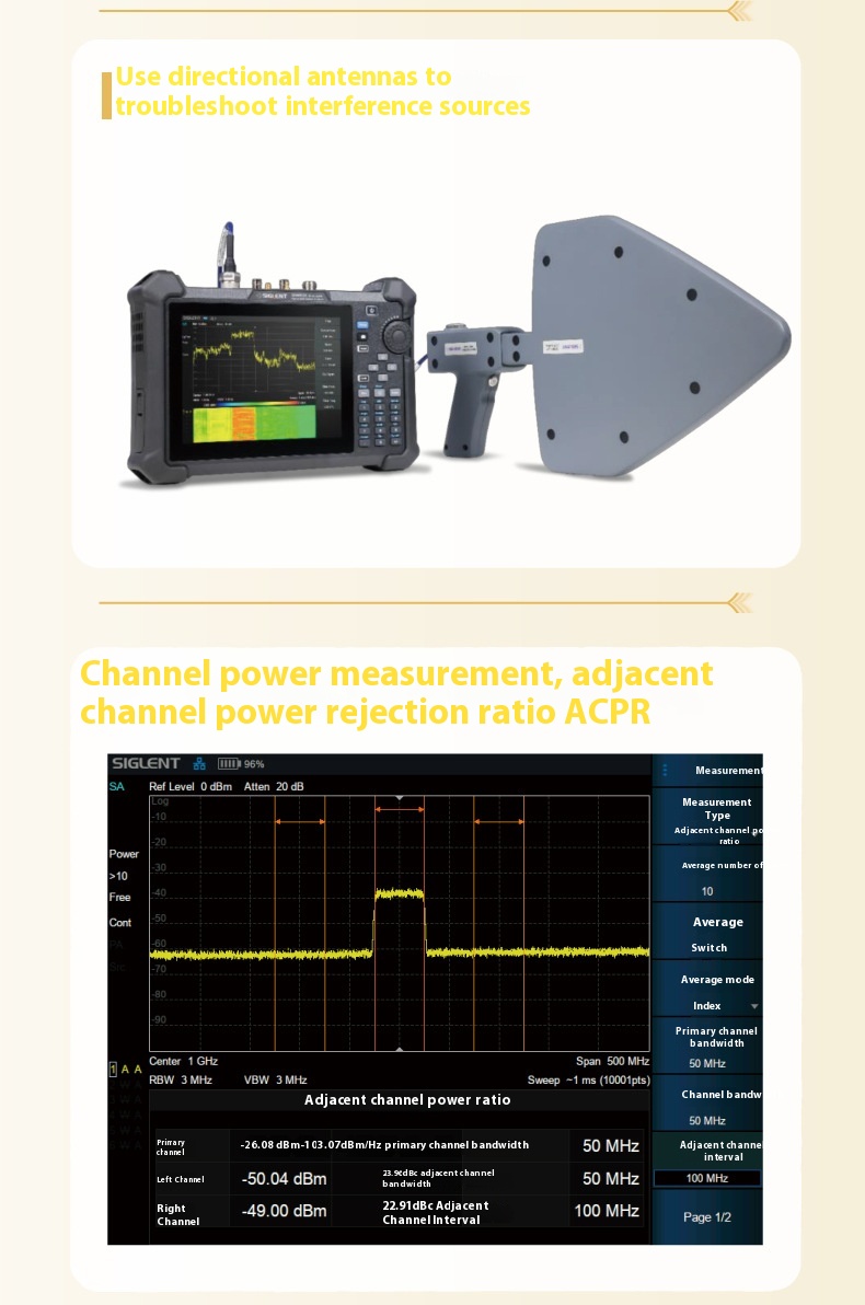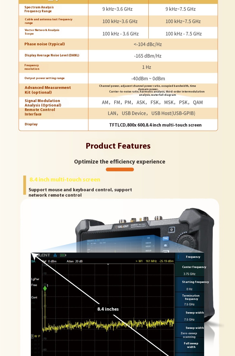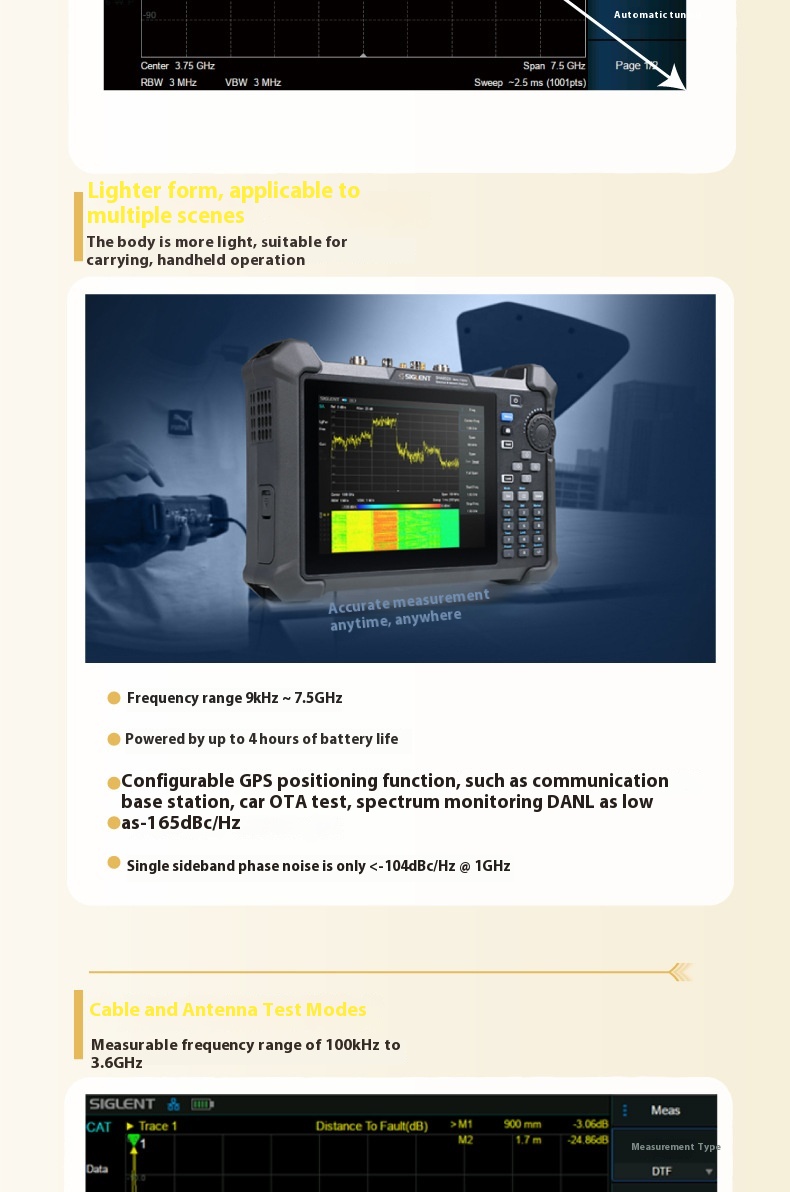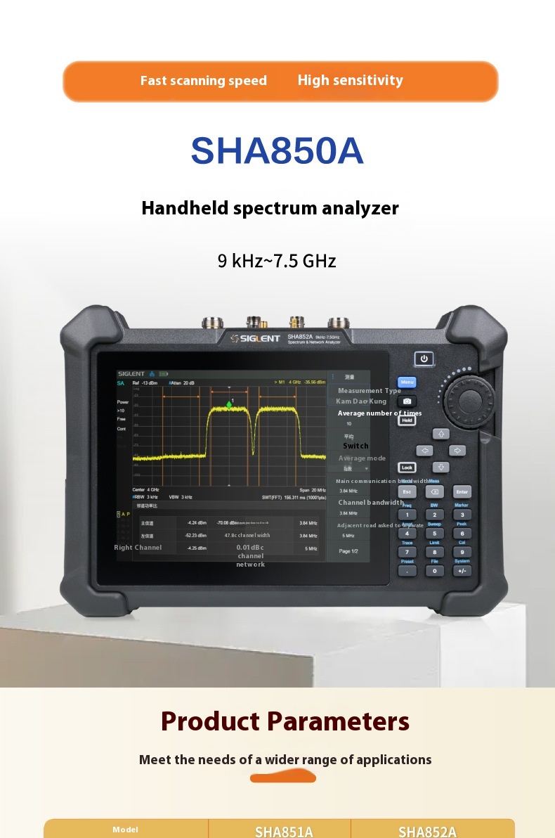 Siglent 定制 OEM 手持式 SHA851A/52A 测试仪器用 9K-3.6 GHz 频谱矢量分析仪