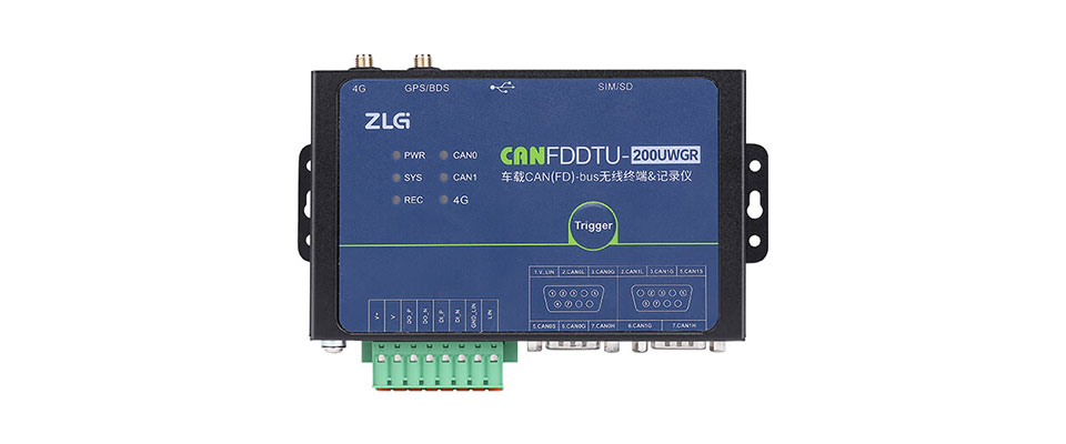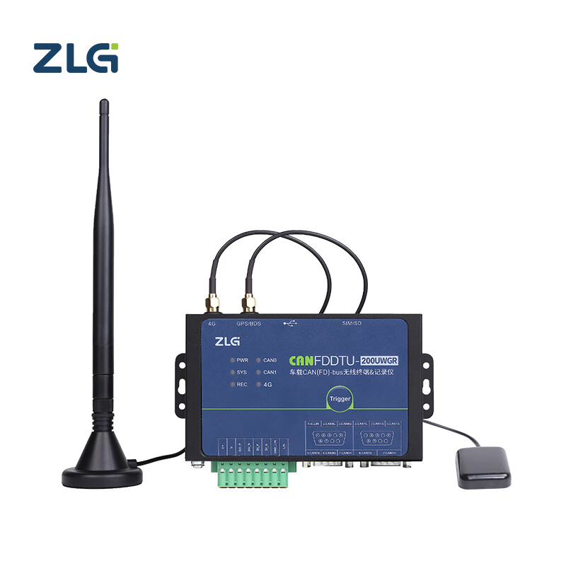 ZLG CANFDDTU-200UWGR 2通道CAN FD数据记录仪,支持4G WiFi GPS北斗LIN,支持汽车黑匣子