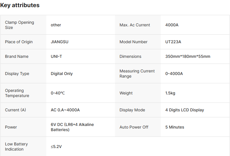 UNI-T UT223A 大口径钳形电流表 RS-232 LCD 背光