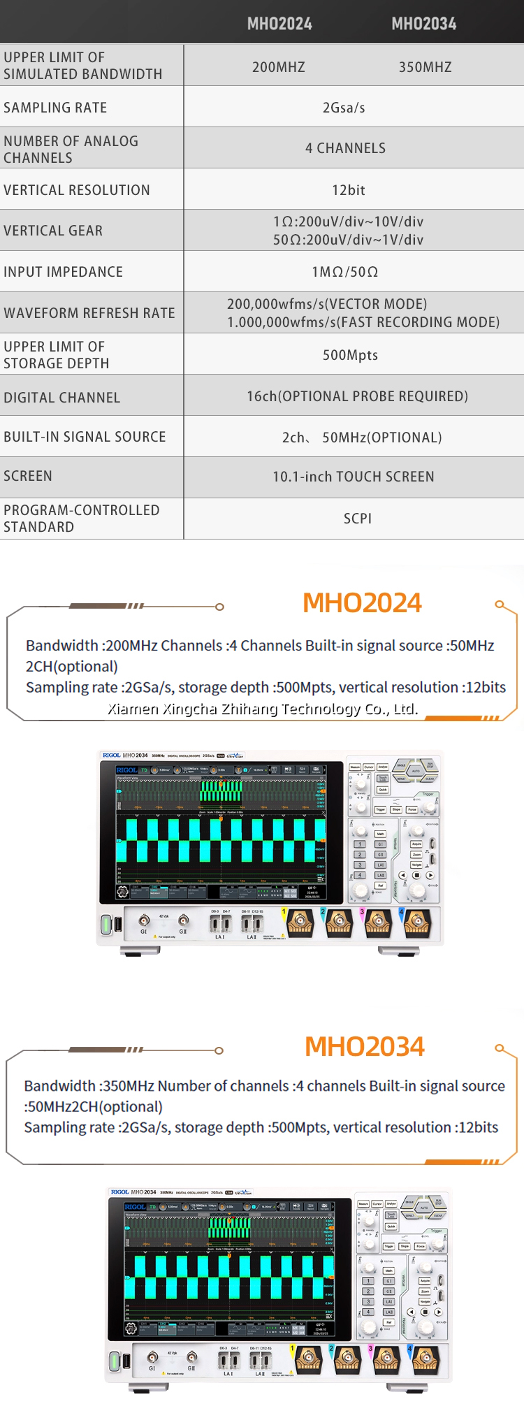 RIGOL MHO2024 MHO2034 12位数字示波器具有高分辨率四通道200MHz 350M