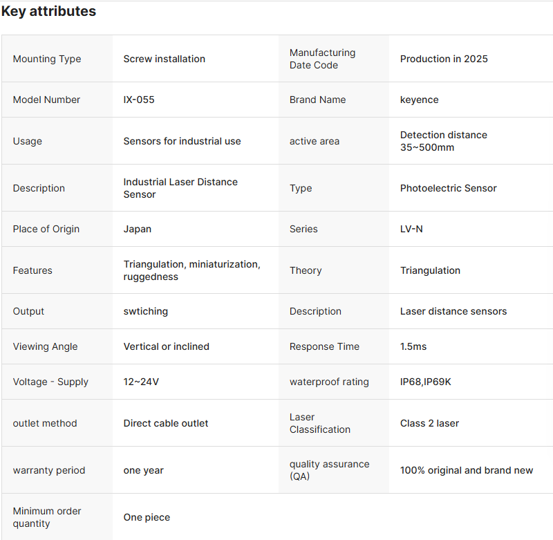 1 件全新未拆封原装 KEYENCE IX-055 激光传感器