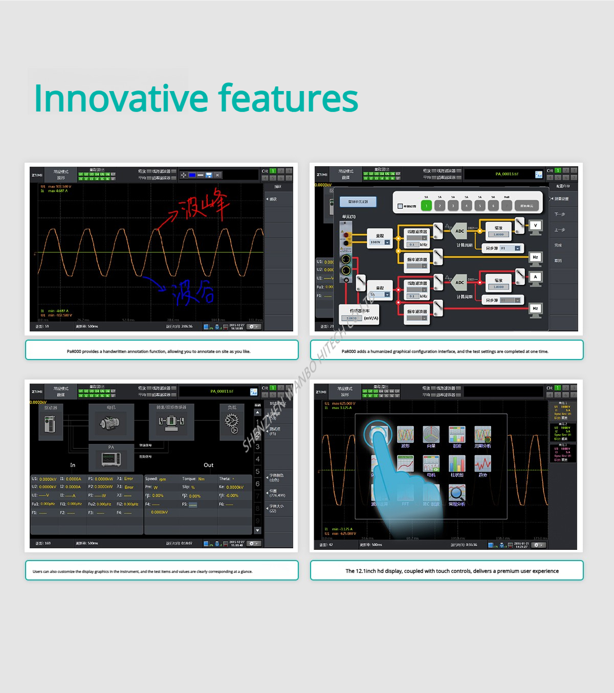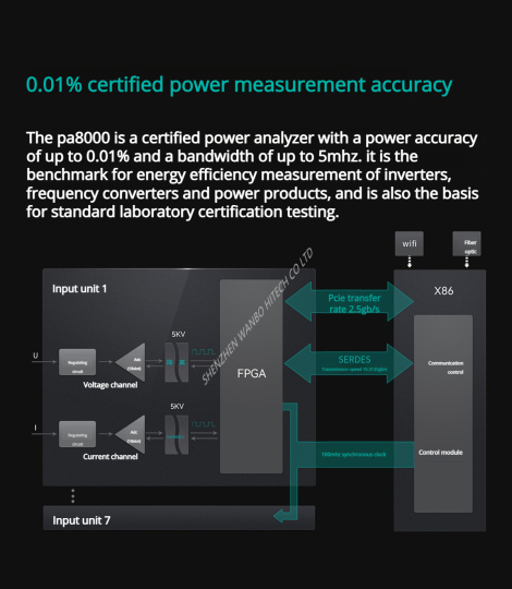 PA8000 is a certified power analyzer with a power accuracy of up to 0.01% and a bandwidth of up to 5 MHz. It serves as the benchmark for measuring the energy efficiency of inverters, frequency converters and power products, and is also the basis for standard laboratory certification and testing.