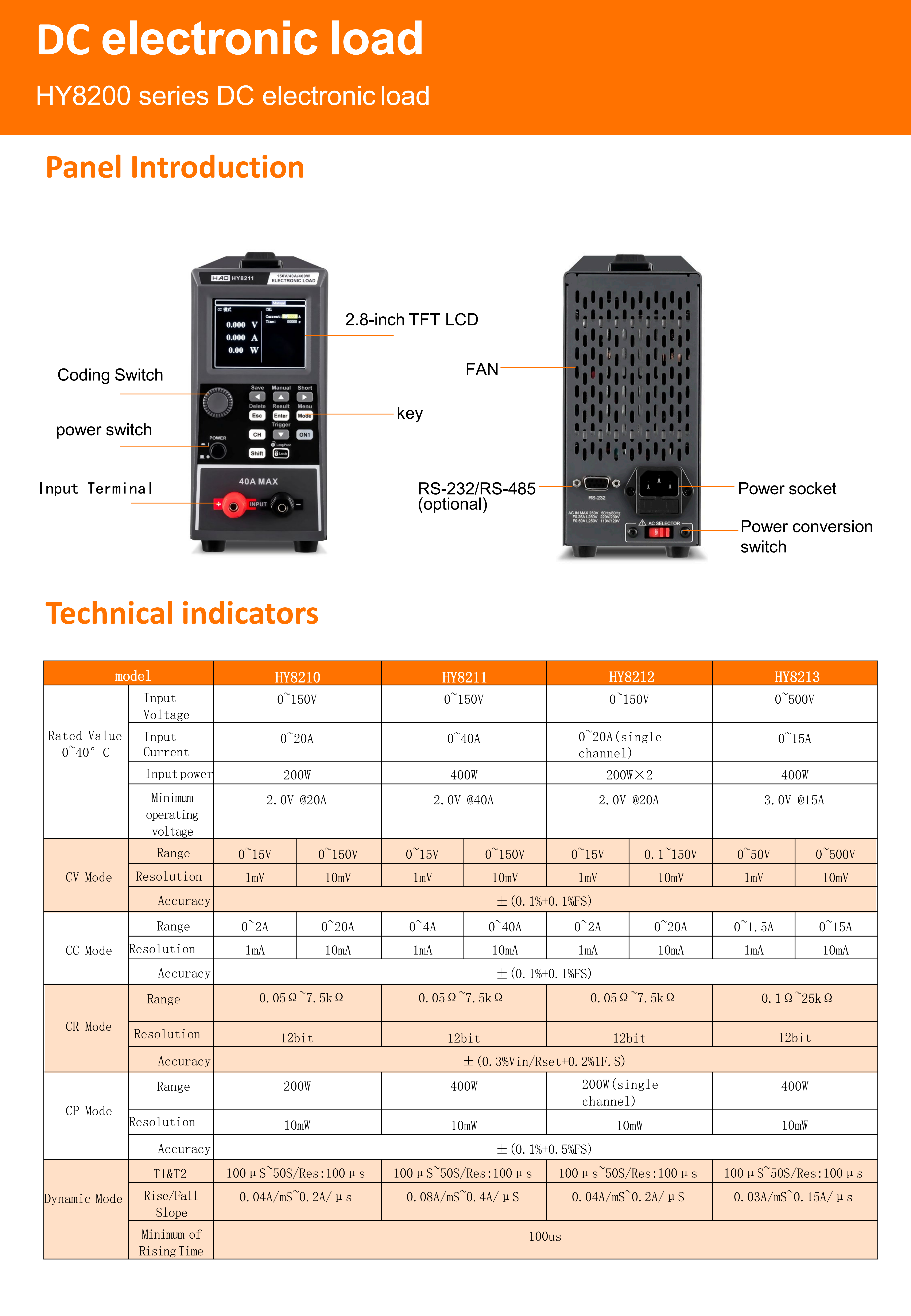 HY8210/ HY8211/HY8212/HY8213 多功能直流电子负载 | 支持动态和静态负载模拟