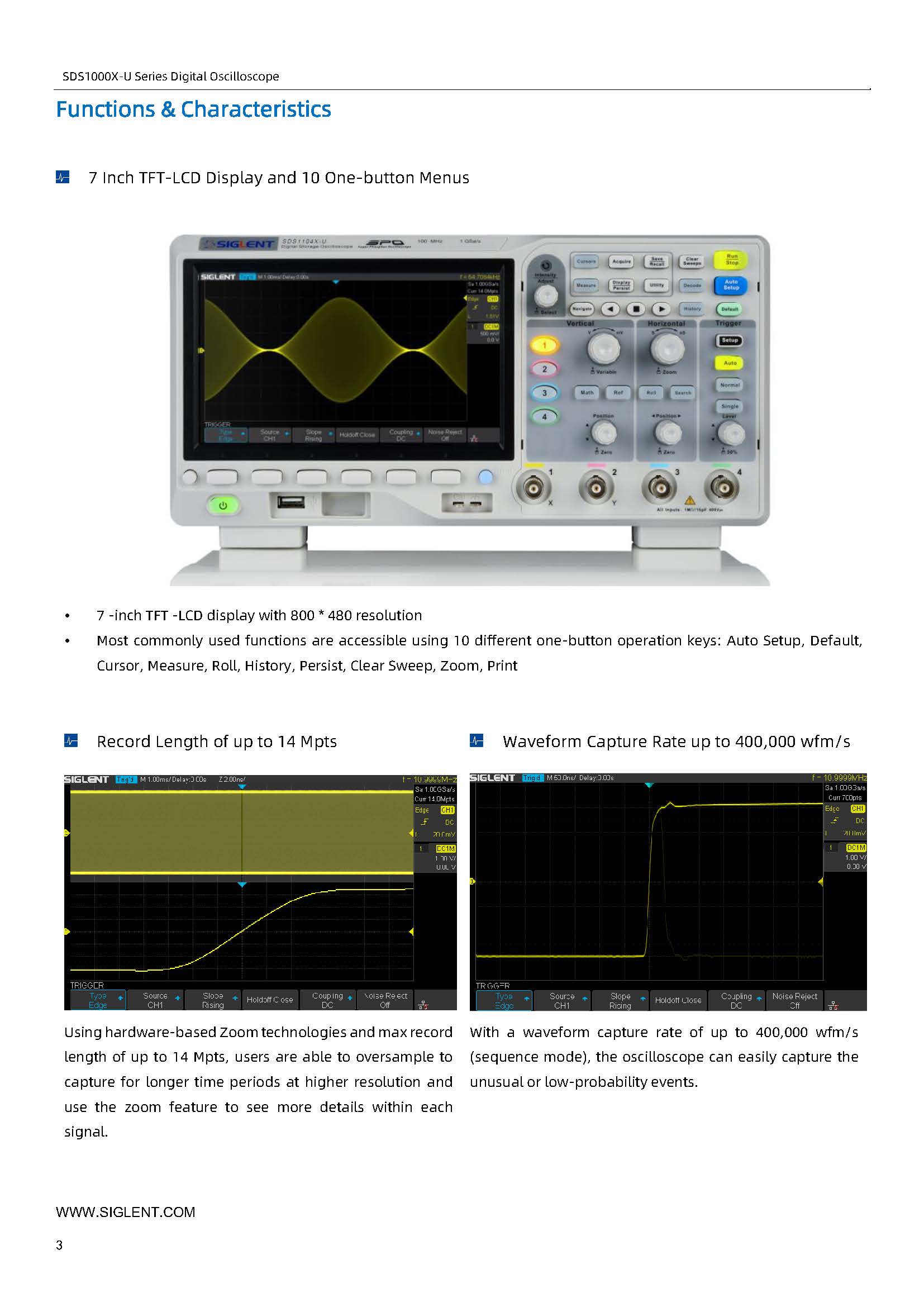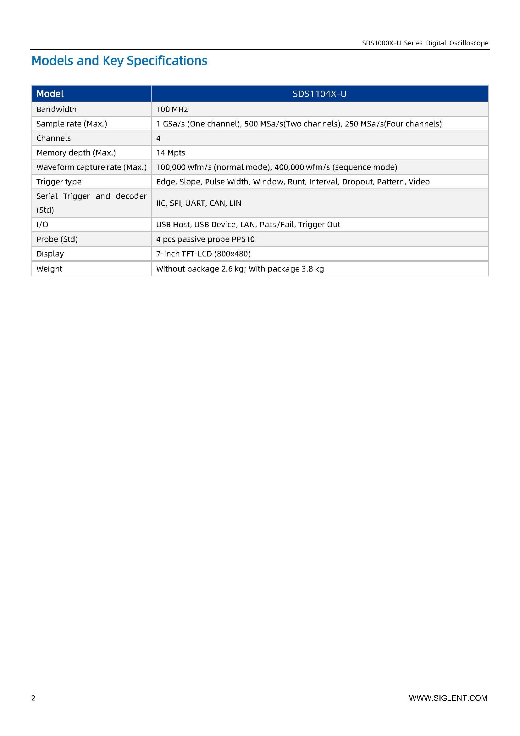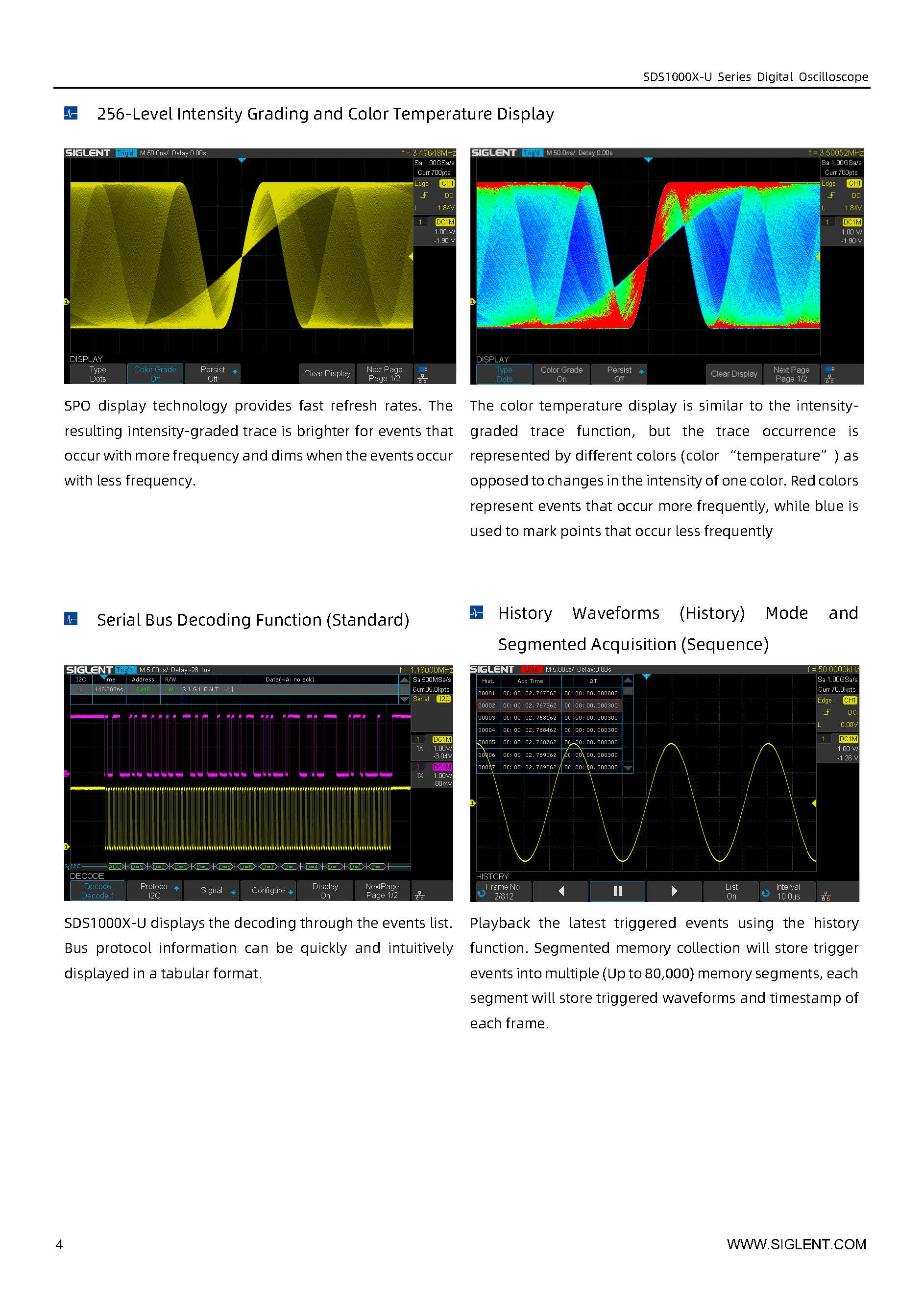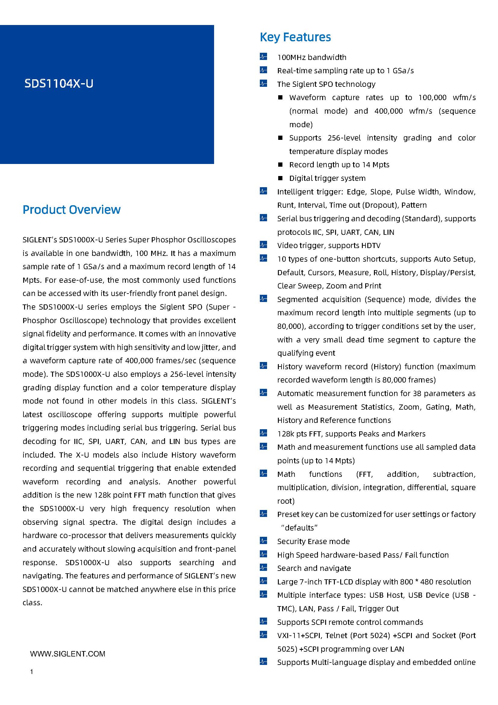 Siglent SDS1104X-U 高精度超荧光示波器 1G采样 100MHz带宽 4通道示波器