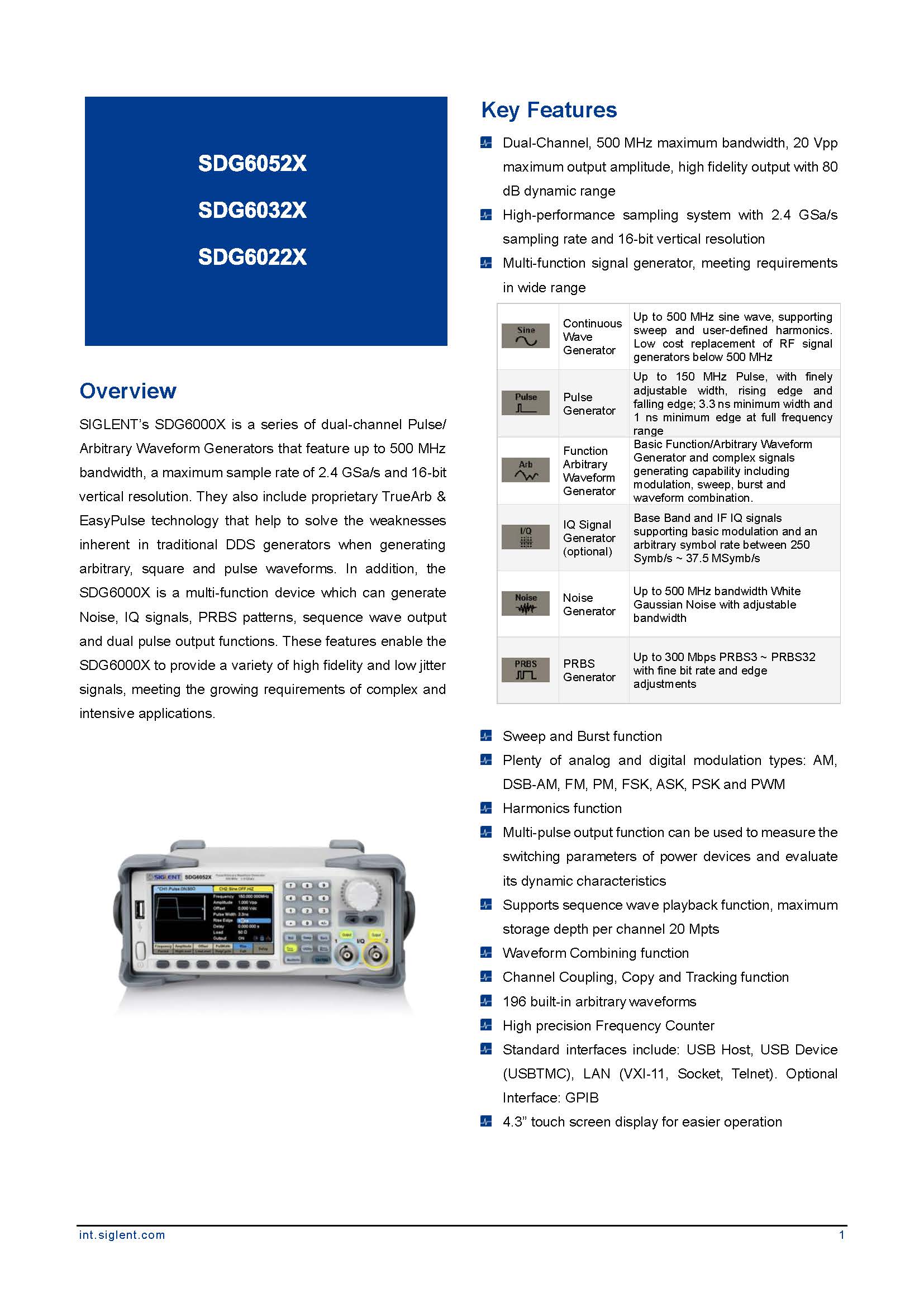 Siglent SDG6022X-E 函数任意波形发生器双通道200MHz 2.4GSa/s采样率,支持正弦波形