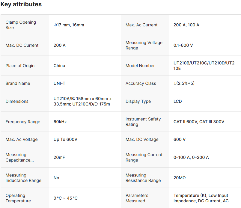 UNI-T UT210B 真有效值 200A 交流迷你钳形电流表,带 NCV 功能